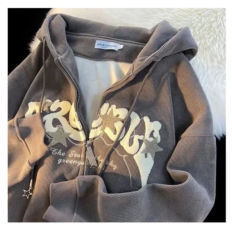 | Brand : Other,Corduroy,Polyester (polyester fiber),Letters,Loose,Single piece,Thin,Long Sleeve,Regular,Hooded,Zipper,Embroidery/embroidery,Fall 2023,Green,Apricot,Dark gray,9002-White,S Recommendation 35.00 kg-47.50 kg,M recommendation 47.50 kg-52.50 kg,L recommendation 52.50 kg-57.50 kg,XL recommendation 57.50 kg-65.00 kg,2XL recommendation 65.00 kg-72.50 kg,3XL recommended 72.50 kg-82.50 kg,Japanese and Korean leisure,Zipper,90%(inclusive)-95%(Exclusive),Harajuku style,Adult,Comfortable and casual,Female,Yes,Coat,National,National |