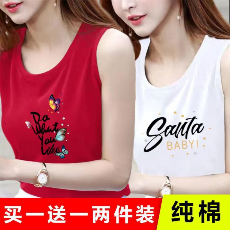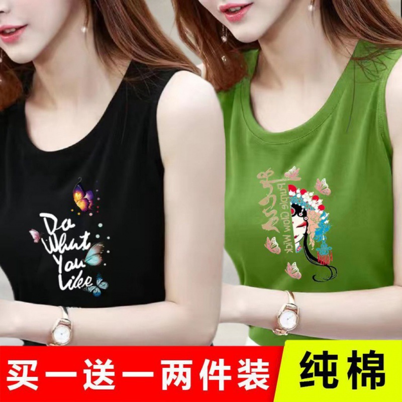Single and Double Cotton Sleeveless T Shirt Women s Loose plus size Printed Women s Vest Summer Outer Wearing Camisole for Women